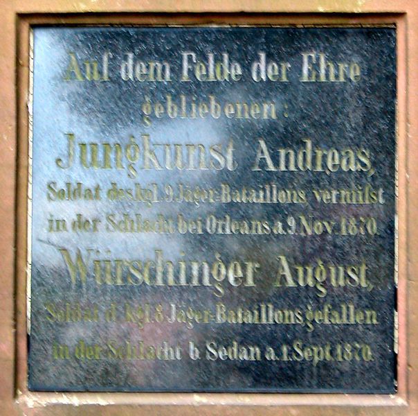Vohenstrauß: Kriegerdenkmal 1870/71, Inschrifttafel |