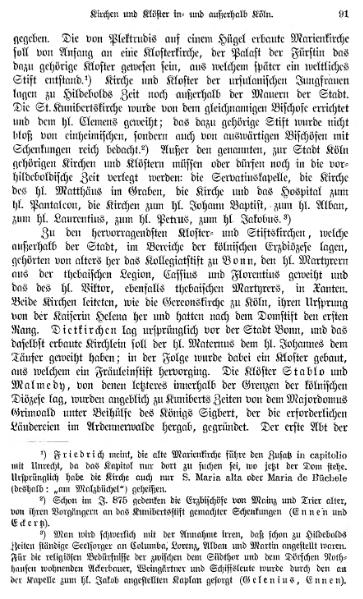 Die äußere Grenze der Kölner Erzdiözese; älteste Kirchen und Klöster | |||
