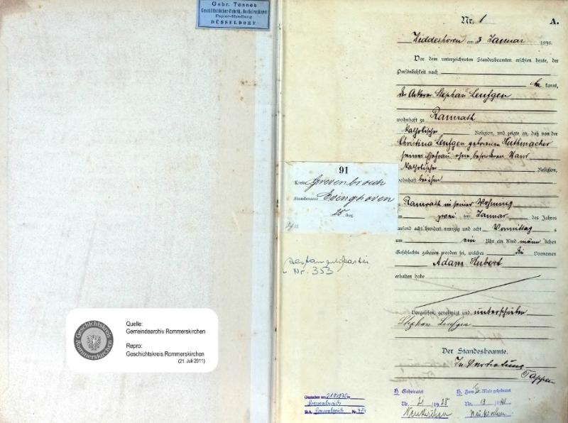 "Standesamtregister aus dem Gemeindearchiv Rommerskirchen"