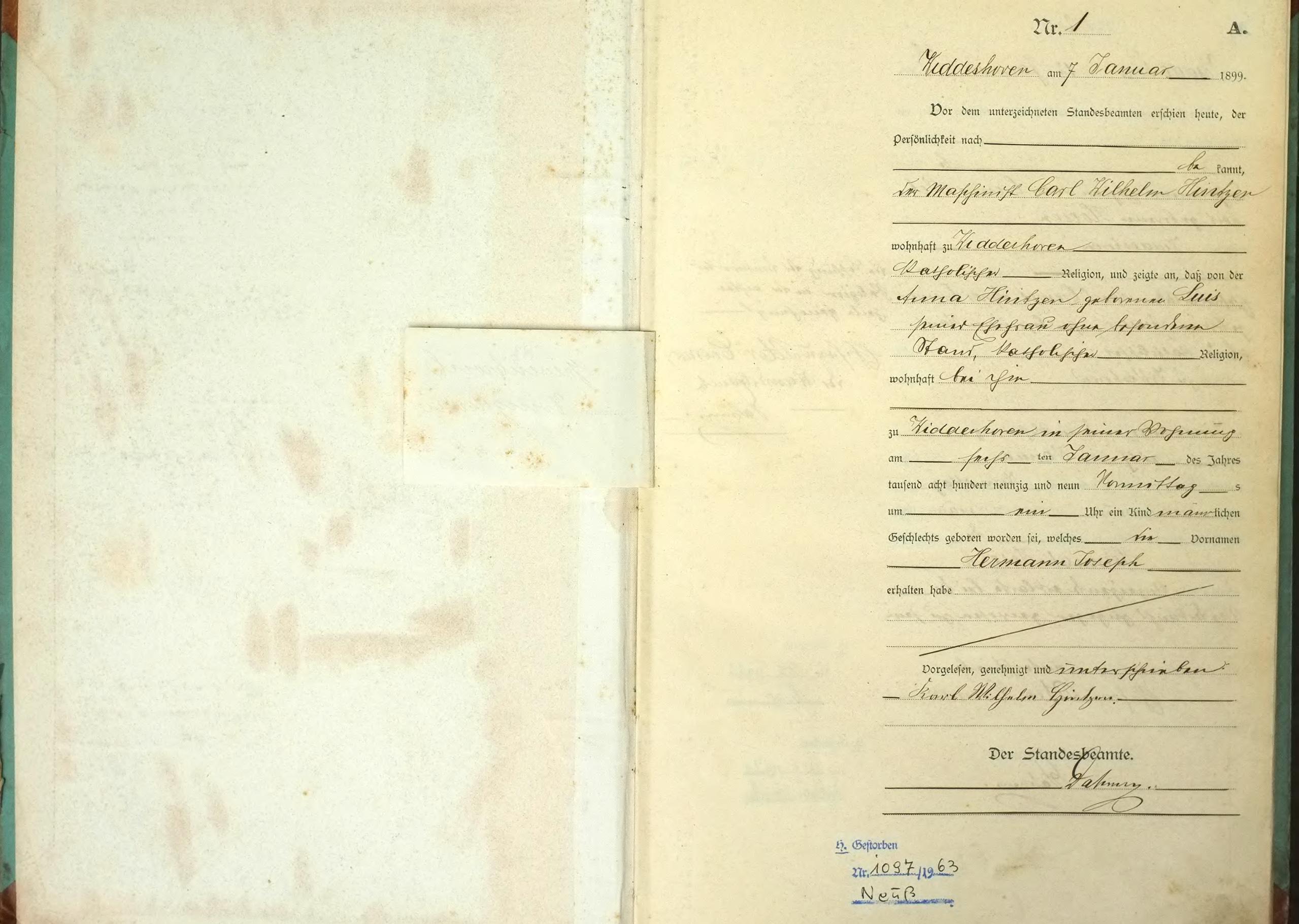 | aktuell | 09:56, 29. Jul. 2011 | 1.536 × 2.346, 41 Seiten (15,79 MB) | KlausErdmann (Diskussion • Beiträge) | {{Information |Beschreibung = ;Bürgermeisterei Evinghoven:Register der Geburts-Urkunden 1899 |Quelle = Gemeindearchiv Rommerskirchen |Urheber = |Datum = 1899 |Scans = Klaus Erdmann ''(Repro: 2 |