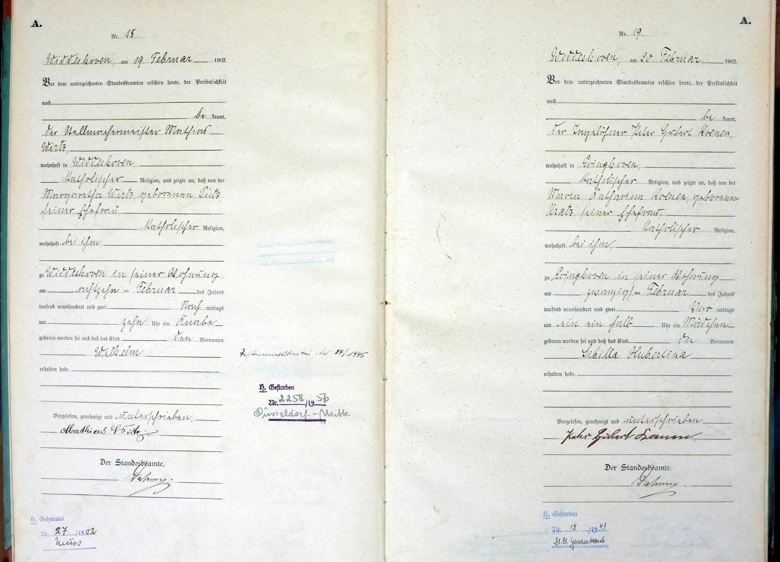 | aktuell | 15:29, 29. Jul. 2011 | 1.656 × 2.566, 41 Seiten (15,57 MB) | KlausErdmann (Diskussion • Beiträge) | {{Information |Beschreibung = ;Bürgermeisterei Evinghoven:Register der Geburts-Urkunden 1902 |Quelle = Gemeindearchiv Rommerskirchen |Urheber = |Datum = 1902 |Scans = Klaus Erdmann ''(Repro: 2 |