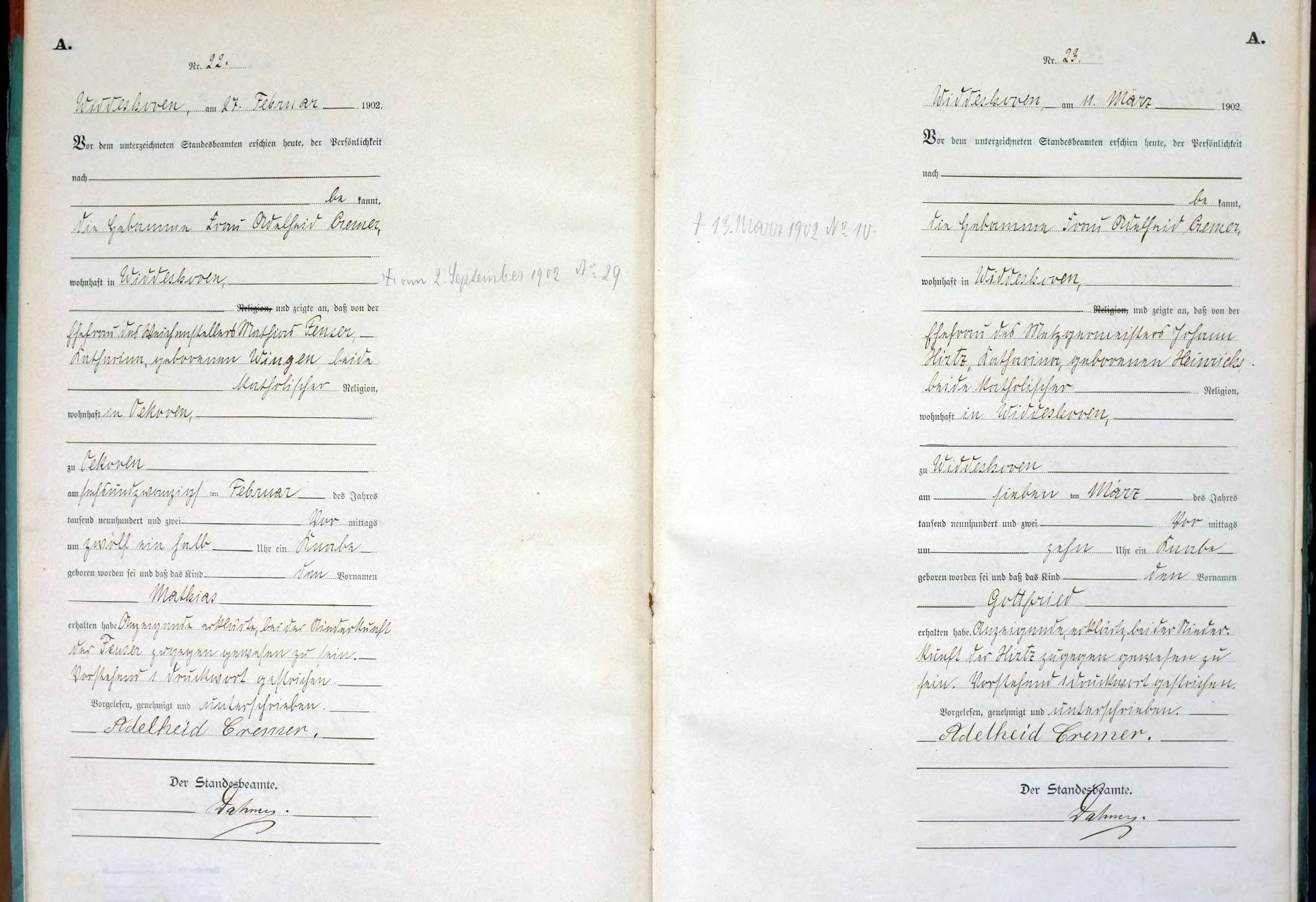"Standesamtregister aus dem Gemeindearchiv Rommerskirchen"