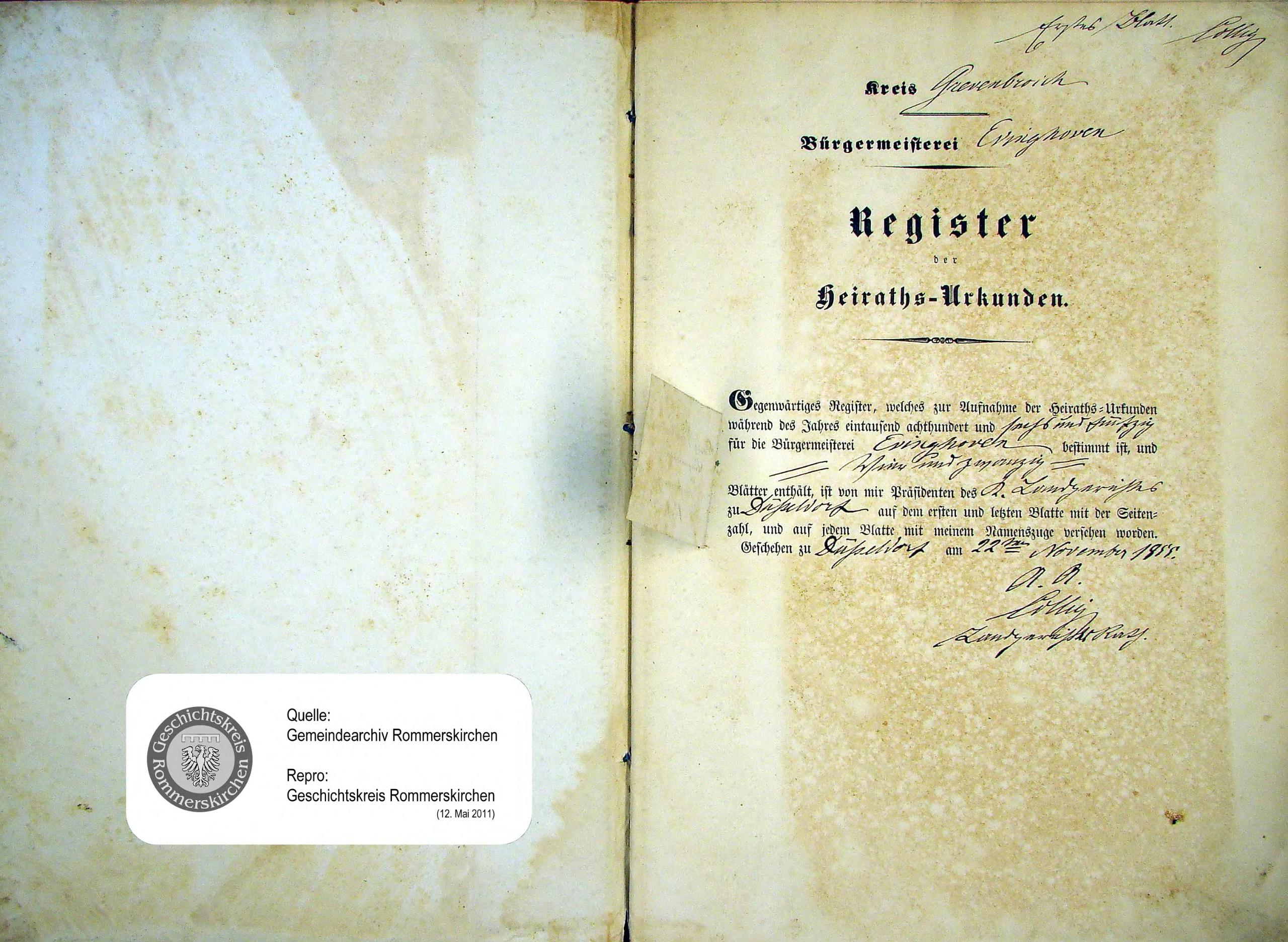 "Standesamtregister aus dem Gemeindearchiv Rommerskirchen"