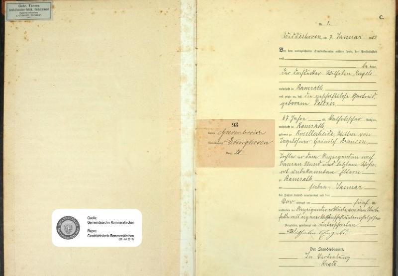 "Standesamtregister aus dem Gemeindearchiv Rommerskirchen"