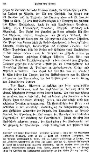 Kirchliche Einteilung und Verwaltung der Kölner Erzdiözese; | |||