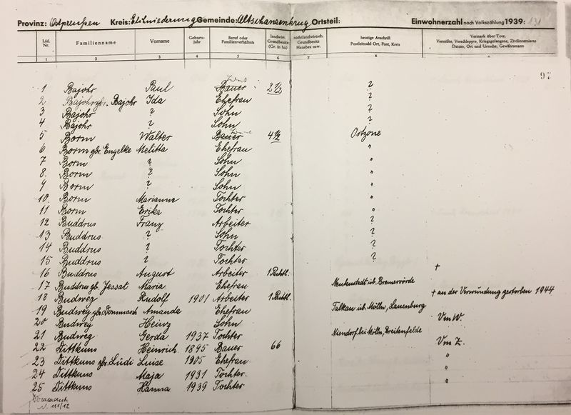 Einwohnerliste zum Zeitpunkt der Räumung Okt. 1944 |