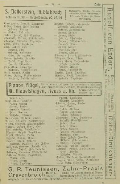 | aktuell | 07:30, 11. Mär. 2017 | 1.400 × 2.096, 14 Seiten (3,75 MB) | KlausErdmann (Diskussion • Beiträge) | {{Information |Beschreibung =;Adressbuch der Bürgermeisterei Elsen im [http://wiki-de.genealogy.net/Kreis_Grevenbroich/Adressbuch_1912 Grevenbroicher Kreisadreßbuch von 1912] |Quelle = [[:de:Stadtarchiv Grevenbroich|Stadtarchiv Greven |