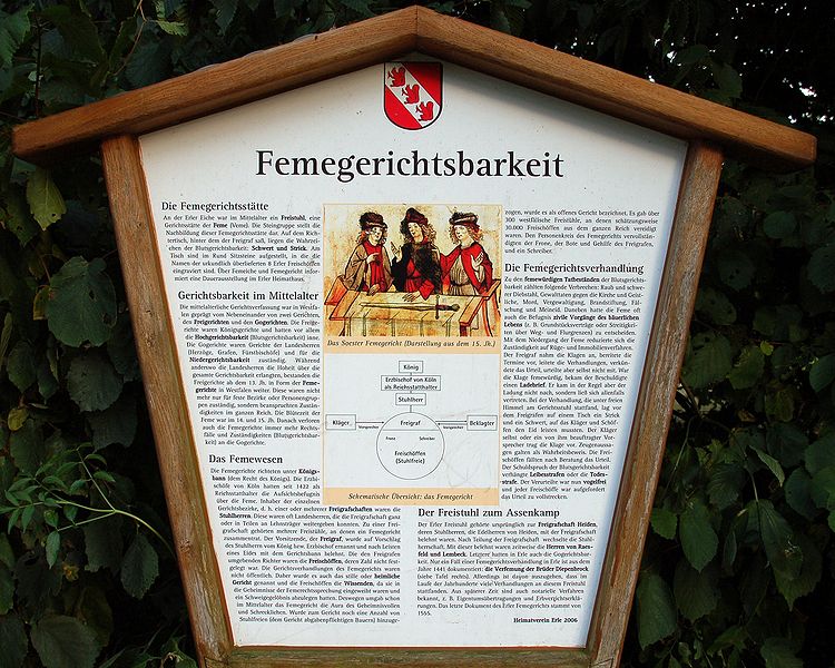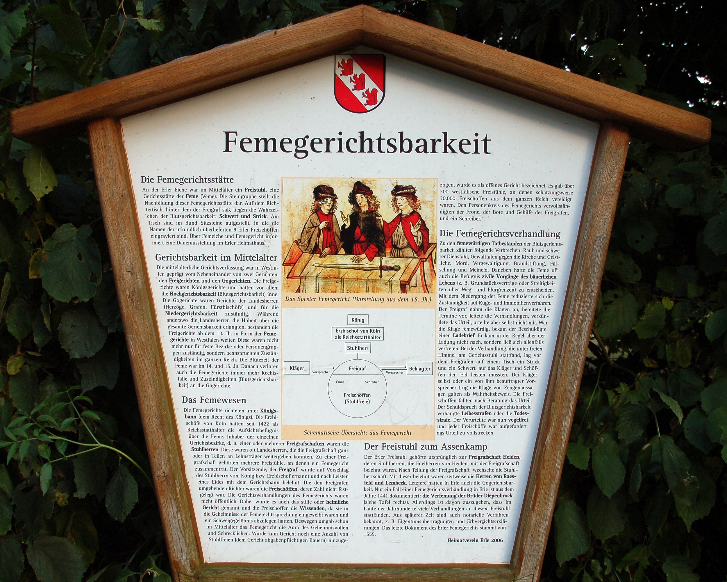 Informationstafel zur Femegerichtsbarkeit an der tausend-jährigen Eiche in Erle | ||||