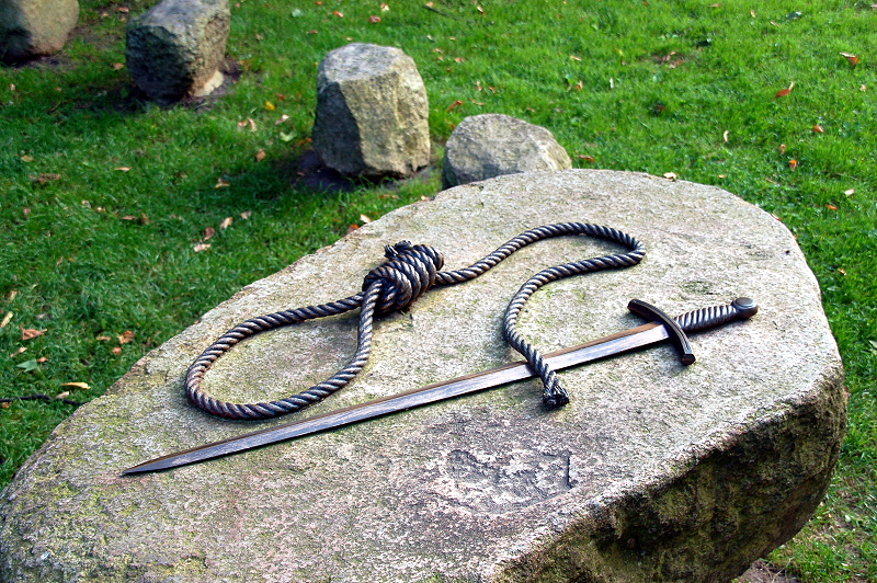 Schwert und Strick, Zeichen der Gerichtsbarkeit an der tausend-jährigen Eiche in Erle | ||||