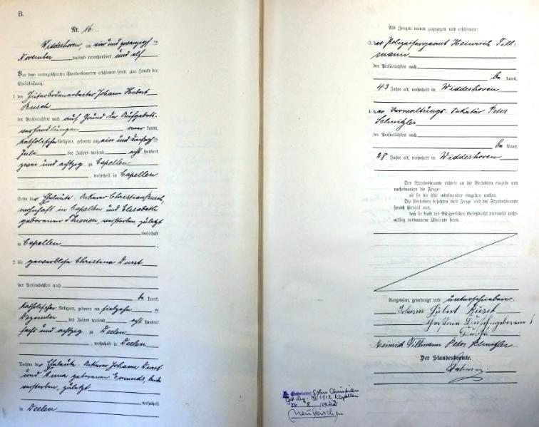 | aktuell | 14:37, 28. Feb. 2013 | 1.581 × 2.365, 21 Seiten (6,67 MB) | KlausErdmann (Diskussion • Beiträge) | {{Information |Beschreibung = ;Standesamt Evinghoven, Heiratsregister 1911 |Quelle = Archiv im Rhein-Kreis Neuss |Urheber = |Datum = 1911 |Scans = Klaus Erdmann ''(Repro: 28. Februar 2013)'' |Genehmigung = |