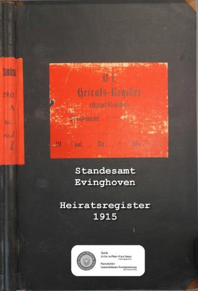 aktuell14:18, 22. Mär. 2013Vorschaubild der Version vom 14:18, 22. Mär. 20131.613 × 2.376, 3 Seiten (419 KB)KlausErdmann (Diskussion • Beiträge){{Information |Beschreibung = ;Standesamt Evinghoven :Alphabetisches Namenverzeichnis zum Heiratsregister 1915 |Quelle = Archiv im Rhein-Kreis Neuss |Urheber = |Datum = 1915 |Scans = Klaus Erdmann ''(Repro
