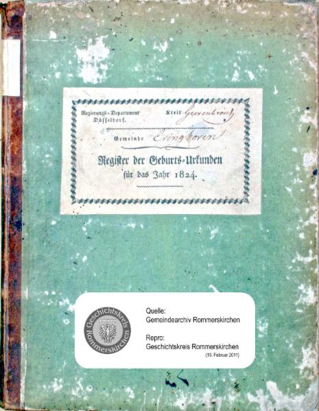 | aktuell | 12:06, 12. Feb. 2011 | 1.680 × 2.160, 38 Seiten (16,21 MB) | KlausErdmann (Diskussion • Beiträge) | {{Information |Beschreibung = ;Standesamt Evinghoven:Geburtsregister von 1824 |Quelle = Gemeindearchiv Rommerskirchen |Urheber = |Datum = 1824 |Scans = Klaus Erdmann ''(Repro: 11. Febr. 2011)'' |