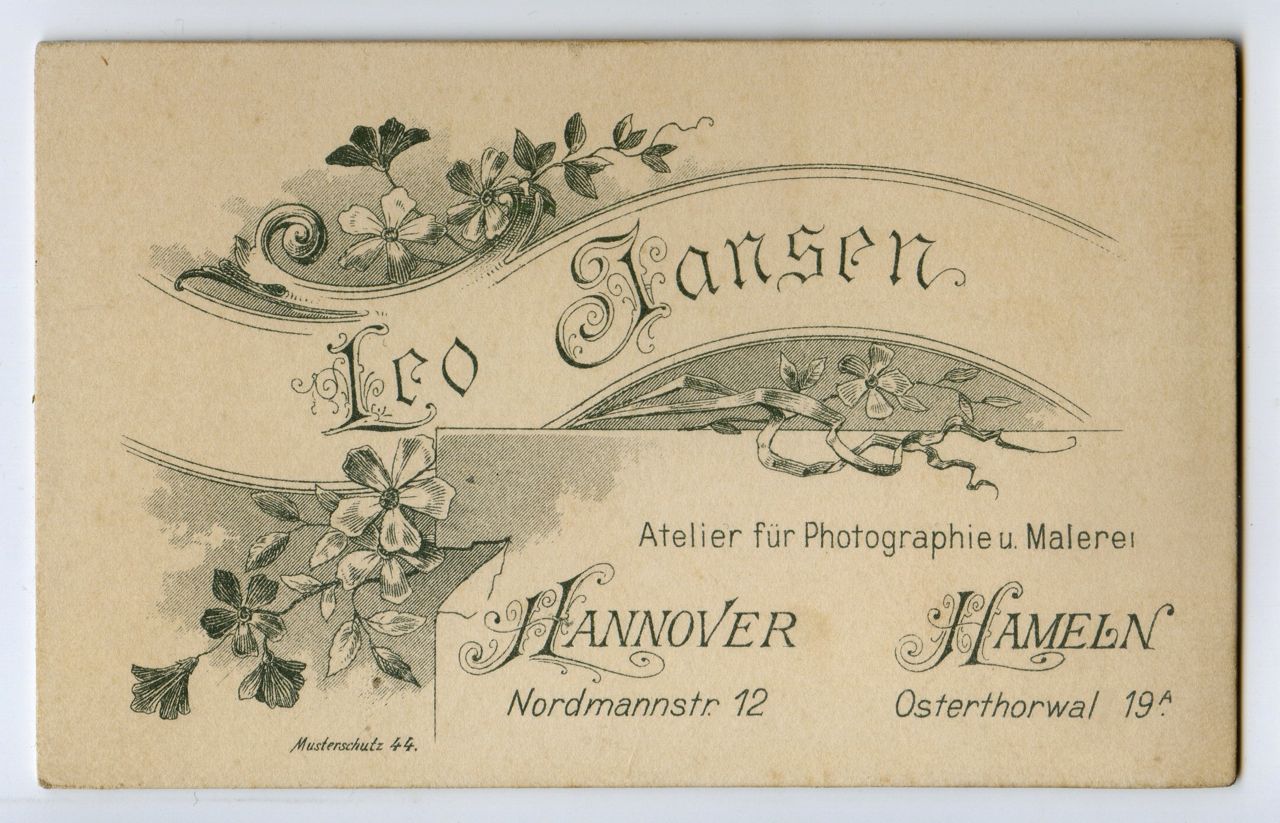 | aktuell | 18:20, 9. Feb. 2016 | 1.280 × 823 (190 KB) | KaiHeinrich (Diskussion • Beiträge) | == Beschreibung == {{Information |Beschreibung = siehe unter "Dateiverwendungen" |Quelle = Fotoalbum Sammlung Sonay Hardt (Secondhand & Kunsthandwerk Elfie & Ignatz, Oberstr. 8, 30167 Hannover) |Urheber = |Datum = |Scans = ''(Repro)'' {{User:KaiHeinrich |