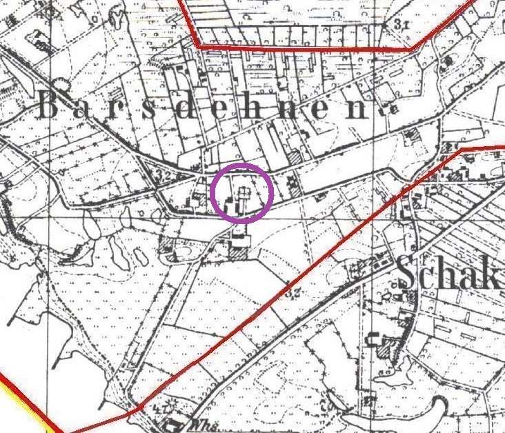 Ausschnitt aus dem Messtischblatt 0794 Russ, Lage des Friedhofs in Barsdehnen (1:25 000)