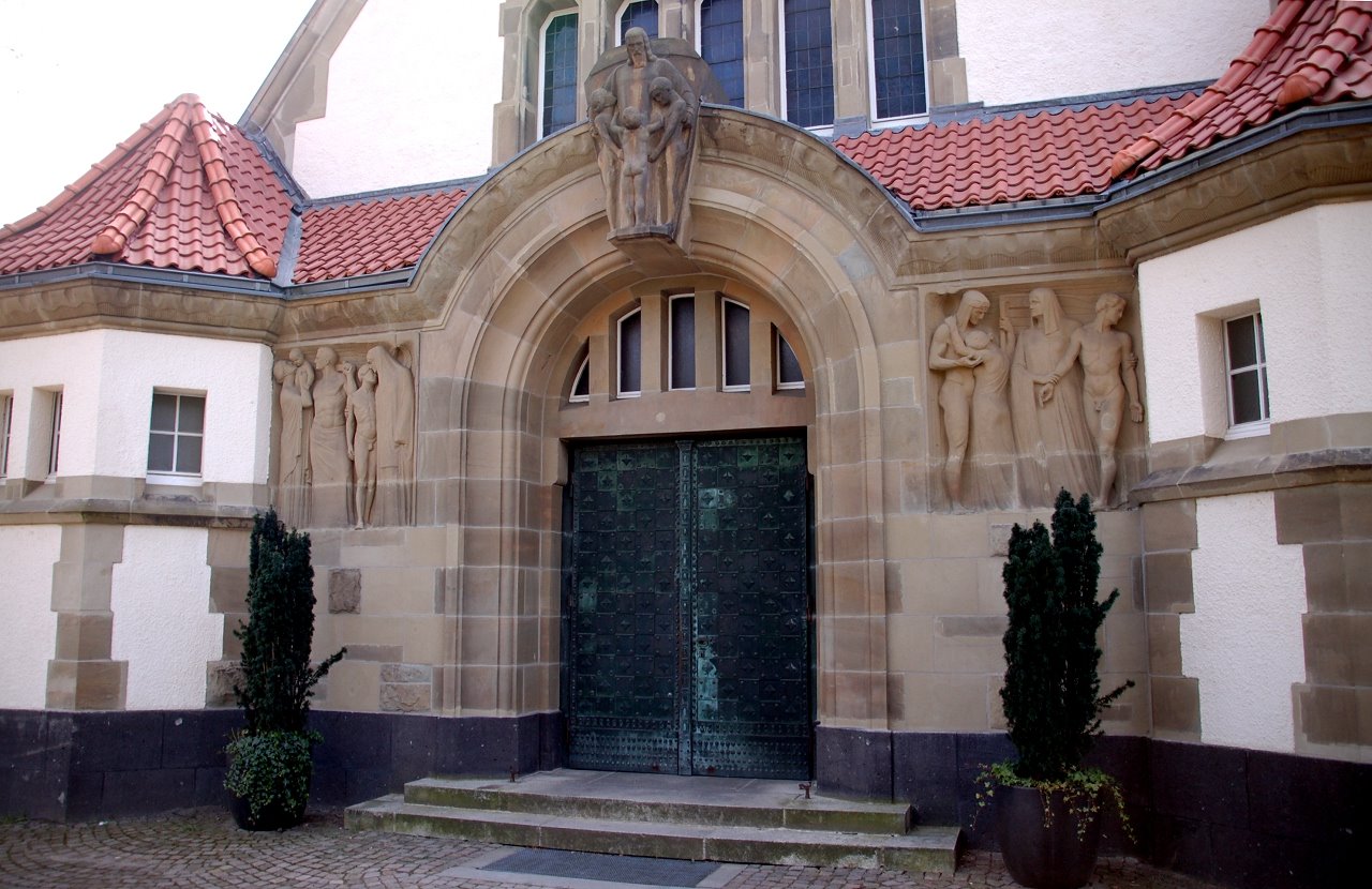 Eingangsportal der Friedhofskapelle auf dem Friedhof Stoffeln in Düsseldorf