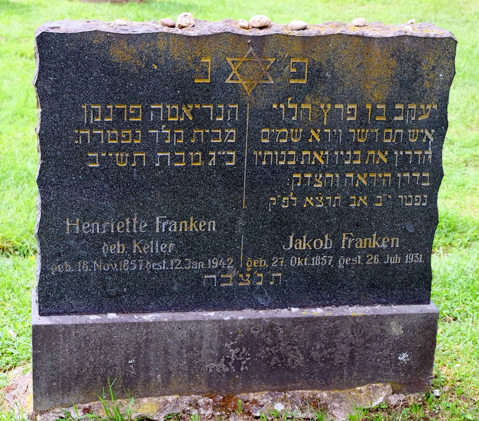 aktuell14:10, 3. Jun. 2016Vorschaubild der Version vom 14:10, 3. Jun. 20161.800 × 1.582 (1,11 MB)KlausErdmann (Diskussion • Beiträge){{Information |Beschreibung = Grabstein auf dem jüdischen Friedhof von Friesheim (Erftstadt) |Quelle = einenes Foto |Urheber = Klaus Erdmann |Datum = 2. Juni 2016 |Scans = |Genehmigung = {{self|Cc-by