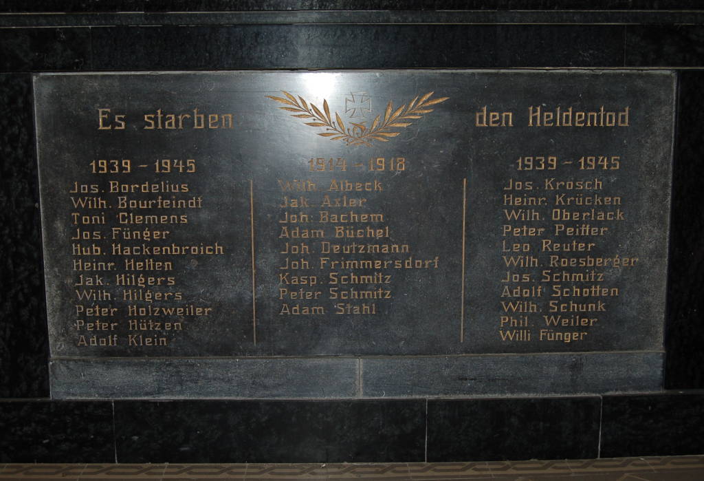 • Beschreibung: Gedenktafel für die Gefallenen der beiden Weltkiege in Rommerskirchen-Frixheim.