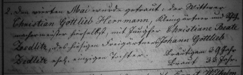 | aktuell | 17:25, 28. Jun. 2006 | 1.222 × 378 (66 KB) | Jzedlitz (Diskussion • Beiträge) | marriage record from the evangelical church Seitendorf, Jauer county, Silesia |