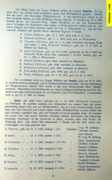 Auszug aus der Geschichte der Familie Zillikens | ||||