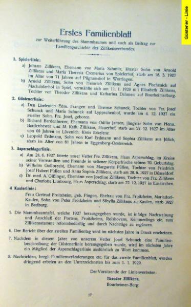 Auszug aus der Geschichte der Familie Zillikens | ||||