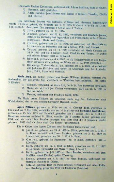 Auszug aus der Geschichte der Familie Zillikens | ||||
