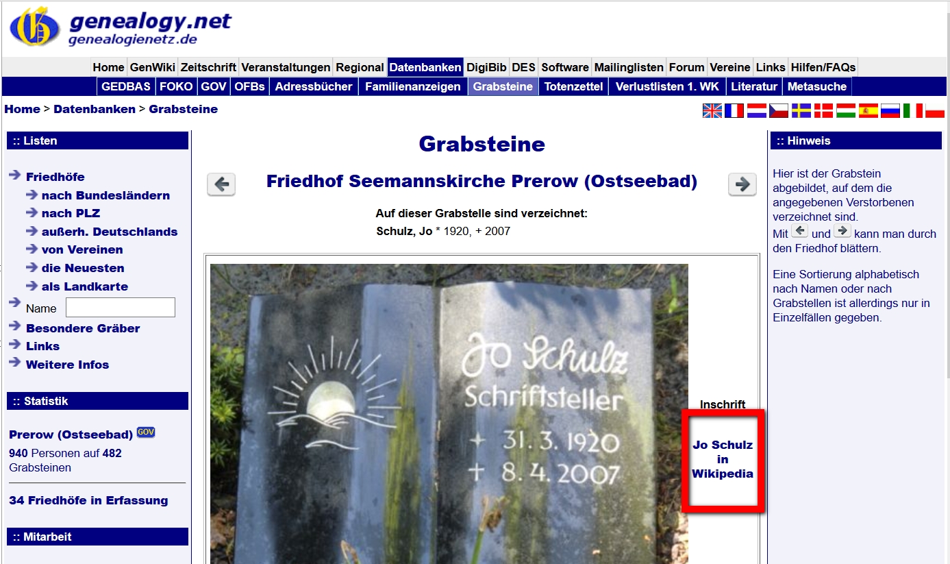 Grabstein-Projekt, Verlinkung
