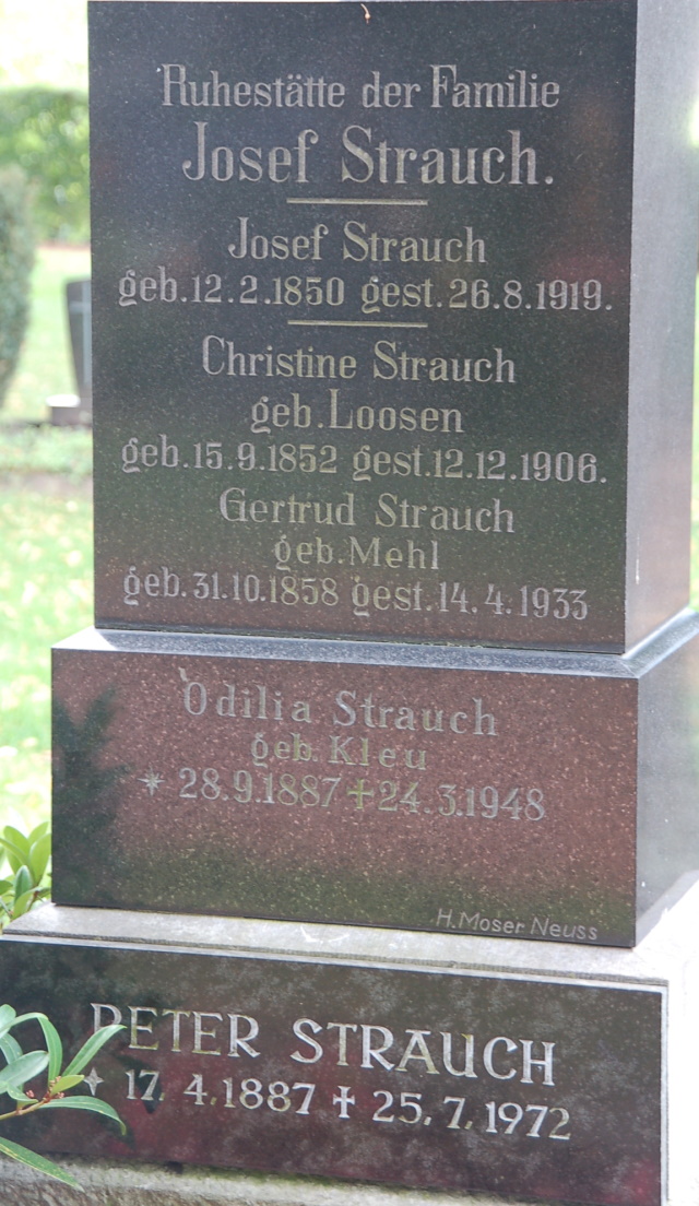 Grabmal der Familie Josef Strauch auf dem Friedhof von Rommerskirchen-Hoeningen | ||||
