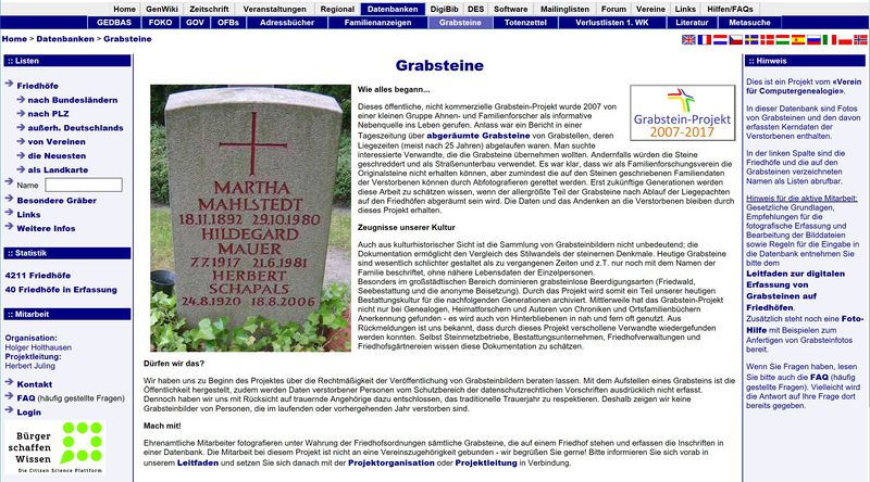 | aktuell | 13:34, 29. Mär. 2018 | 2.274 × 1.261 (969 KB) | HHolthausen (Diskussion • Beiträge) | {{Information |Beschreibung = Logo Grabstein-Projekt |Quelle = selbst erstellt |Urheber = H. Berger |Datum = 29.03.2018 |Scans = |Genehmigung = |Andere_Versionen = |Anmerkungen = }} [[Category:Images {{subst:REVISIONUSER}}]] |