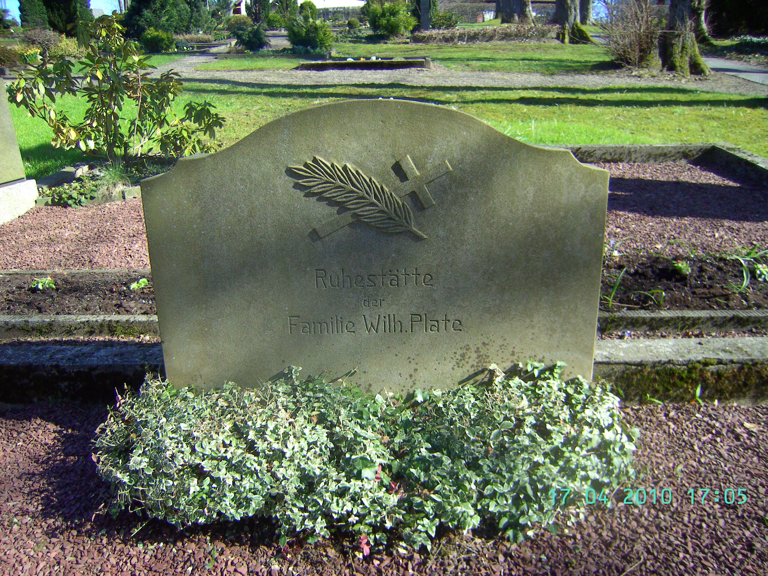 | aktuell | 19:52, 7. Jul. 2010 | 3.040 × 2.280 (2,47 MB) | Marlen (Diskussion • Beiträge) | {{Information |Beschreibung = Grabstein Wilhelm Plate |Quelle = Friedhof Kierspe |Urheber = Marlen Vedder |Datum = |Scans = |Genehmigung = |Andere Versionen = |Anmerkungen = }} |