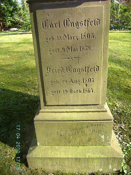 | aktuell | 19:58, 7. Jul. 2010 | 2.280 × 3.040 (2,07 MB) | Marlen (Diskussion • Beiträge) | {{Information |Beschreibung = Grabstein Engstfeld |Quelle = Friedhof Kierspe |Urheber = Marlen Vedder |Datum = |Scans = |Genehmigung = |Andere Versionen = |Anmerkungen = }} |