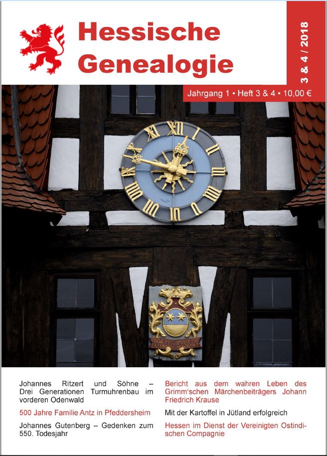 | aktuell | 12:15, 3. Feb. 2019 | 656 × 915 (116 KB) | NeidhardtW (Diskussion • Beiträge) | {{Information |Beschreibung = Hessische Genealogie Heft 3&4 2018 Titelseite |Quelle = |Urheber = Werner Neidhardt |Datum = 03. Feb. 2019 |Scans = |Genehmigung = |Andere_Versionen = |Anmerkungen = }} [[Category:Images {{subst:REVISIONUSER}}]] |