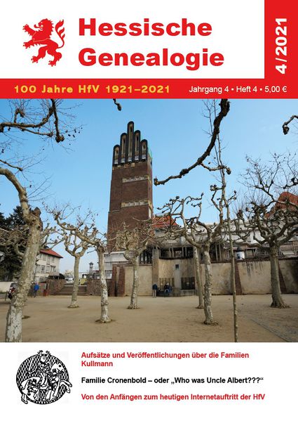 | aktuell | 12:13, 29. Nov. 2021 | 665 × 938 (189 KB) | NeidhardtW (Diskussion • Beiträge) | {{Information |Beschreibung = Hessische Genealogie Heft 4/2021 Titelseite |Quelle = |Urheber = Werner Neidhardt |Datum = 29. November 2021 |Scans = |Genehmigung = |Andere_Versionen = |Anmerkungen = }} [[Category:Images {{subst:REVISIONUSER}}]] |