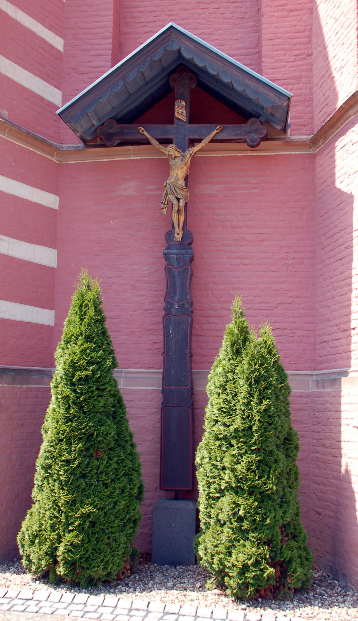 Das Missionskreuz von 1865 an der Ostseite der kath. Heilig-Kreuz Kirche von Hasselsweiler