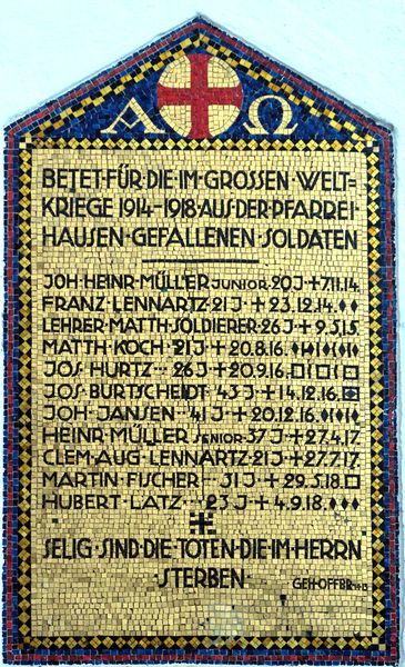 | aktuell | 19:17, 21. Jan. 2017 | 1.200 × 1.972 (742 KB) | KlausErdmann (Diskussion • Beiträge) | {{Information |Beschreibung = ;Gedenktafel für die Opfer des I. Weltkrieges in Hausen (Heimbach) am Hauptportal der kath. Pfarrkirche St. Nikolaus |Quelle = selbst fotografiert |Urheber = Klaus Erdmann '' |