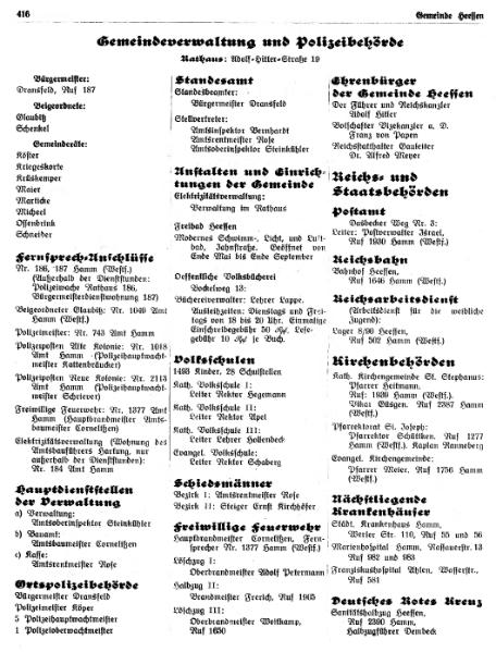 Adressbuch der Gemeinde Heessen von 1938 | |||