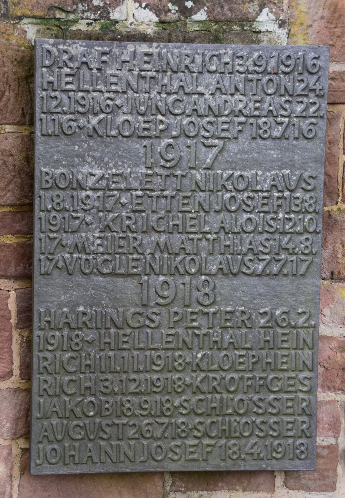 Das Denkmal für die Opfer der beiden Weltkriege auf dem Ehrenfriedhof Hillesheim
