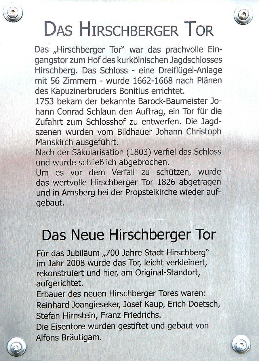 Hinweistafel zum "Neuen Hirschberger Tor" in Hirschberg / Sauerland