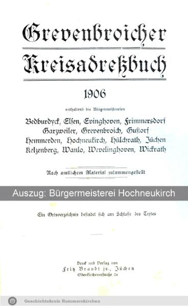 Druck und Verlag von Fritz Brand jr., Jüchen | |||