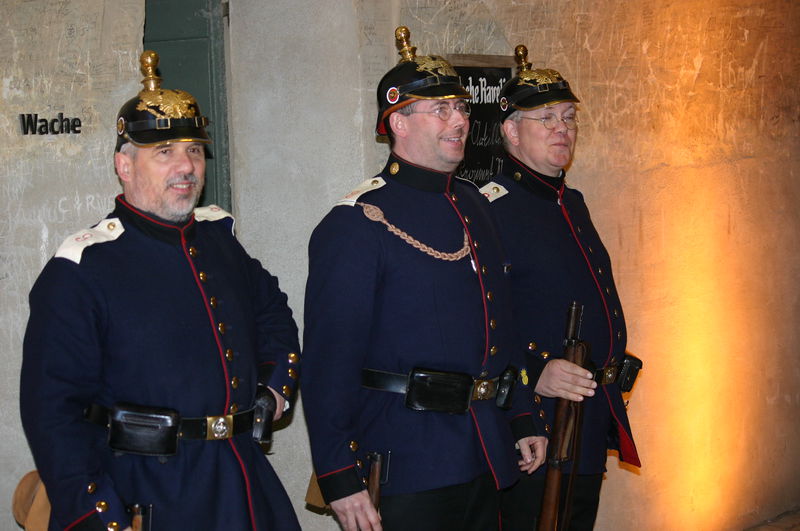 Darsteller des Fußartillerie-Regiments 9 vor der Wache in der Festung Ehrenbreitstein |
