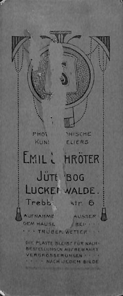 aktuell03:19, 18. Nov. 2021Vorschaubild der Version vom 03:19, 18. Nov. 20211.172 × 2.820 (205 KB)KaiHeinrich (Diskussion • Beiträge){{Information |Beschreibung = siehe unter "Dateiverwendungen" |Quelle = NL Ihlenburg, Fotosammlung |Urheber = Arbeitsgemeinschaft für mitteldeutsche Familienforschung e.V. (AMF) |Datum = |Scans = ''(Repro)'' |Genehmigung = Freigabe für GenWiki |Andere