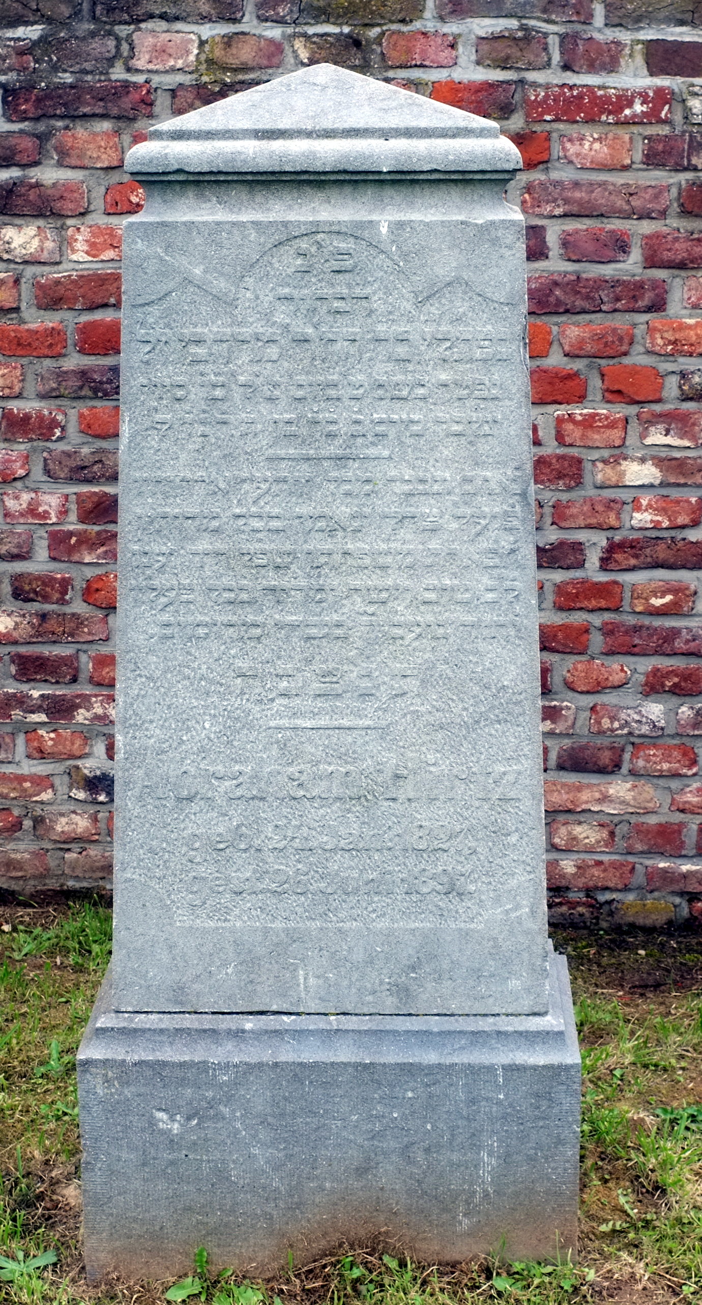 aktuell07:38, 23. Aug. 2016Vorschaubild der Version vom 07:38, 23. Aug. 20161.380 × 2.563 (1,07 MB)KlausErdmann (Diskussion • Beiträge){{Information |Beschreibung = ;Grabstein auf dem jüdischen Friedhof in Müntz mit hebräischer Inschrift |Quelle = selbst fotografiert |Urheber = Klaus Erdmann |Datum = Aug.2016 |Scans = |Genehmigung = {{self|C