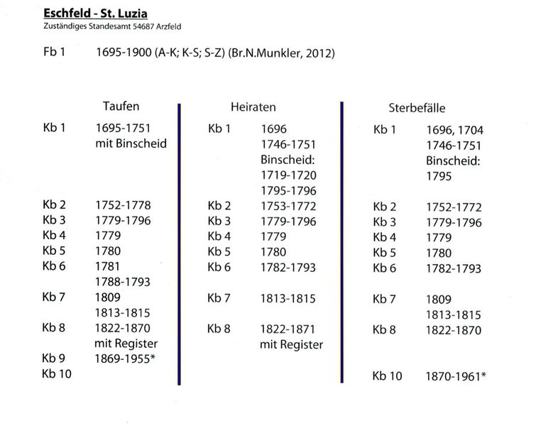 Die Kirchenbücher St. Luzia, Eschfeld im Bistumsarchiv Trier