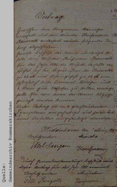 Vertrag des Kriegervereins Hoeningen mit dem Musiker Kaufmann aus Ramrath für das Jahr 1906 | |