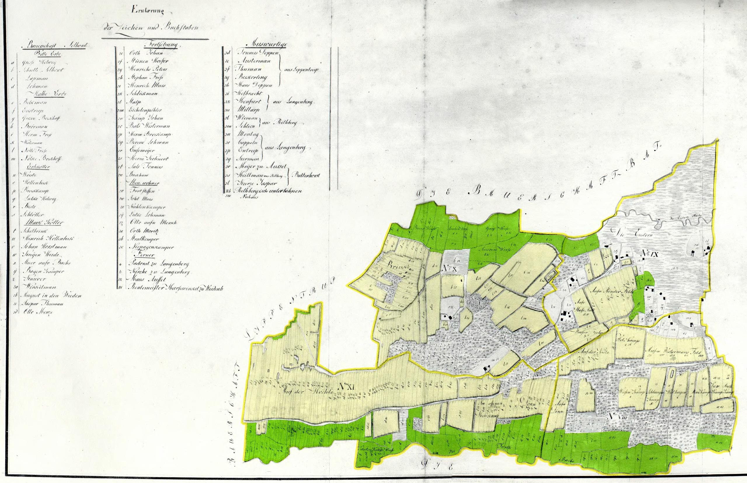 Carte von der Feldmark der zum Fürstlich Osnabrückischen Amte Reckenberg gehörigen, und im Kirchspiel Ostlangenberg belegenen Bauerschaft Selhorst | ||