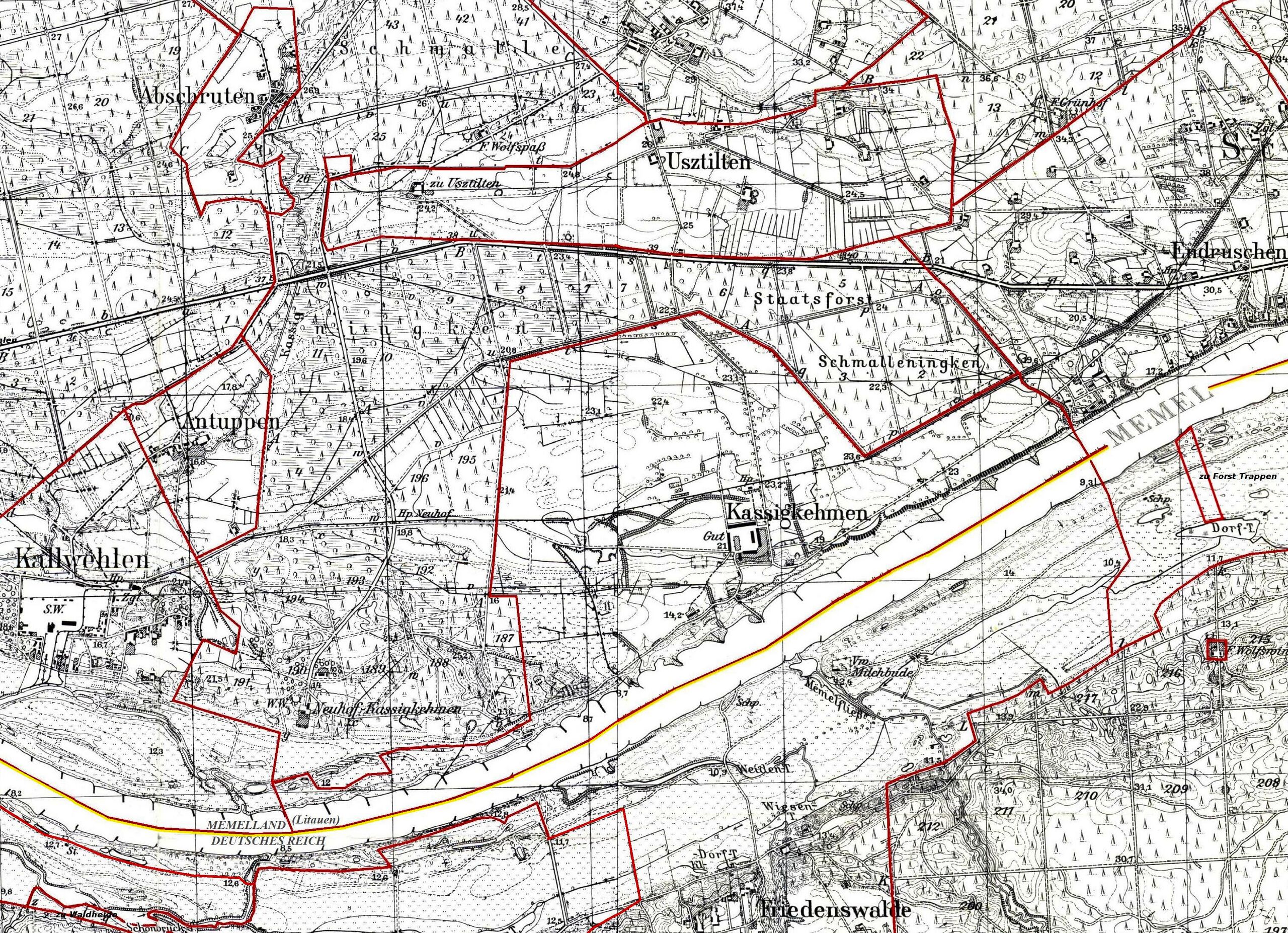Ausschnitt aus dem Messtischblatt 09101 Schmalleningken und 09100 Wischwill (1:25 000) | ||||