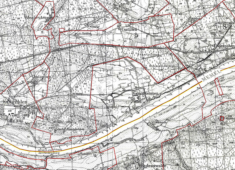 | aktuell | 19:12, 7. Aug. 2011 | 3.037 × 2.199 (1,98 MB) | Broschell (Diskussion • Beiträge) | {{Information |Beschreibung = Ausschnitt aus dem Messtischblatt 09101 Schmalleningken und 09100 Wischwill (1:25 000) |Quelle = © Bundesamt für Kartographie und Geodäsie |Urheber = unbekannt |Datum = 1913-1927 |Scans = |Genehmigung = {{Memelkarten}} |A |