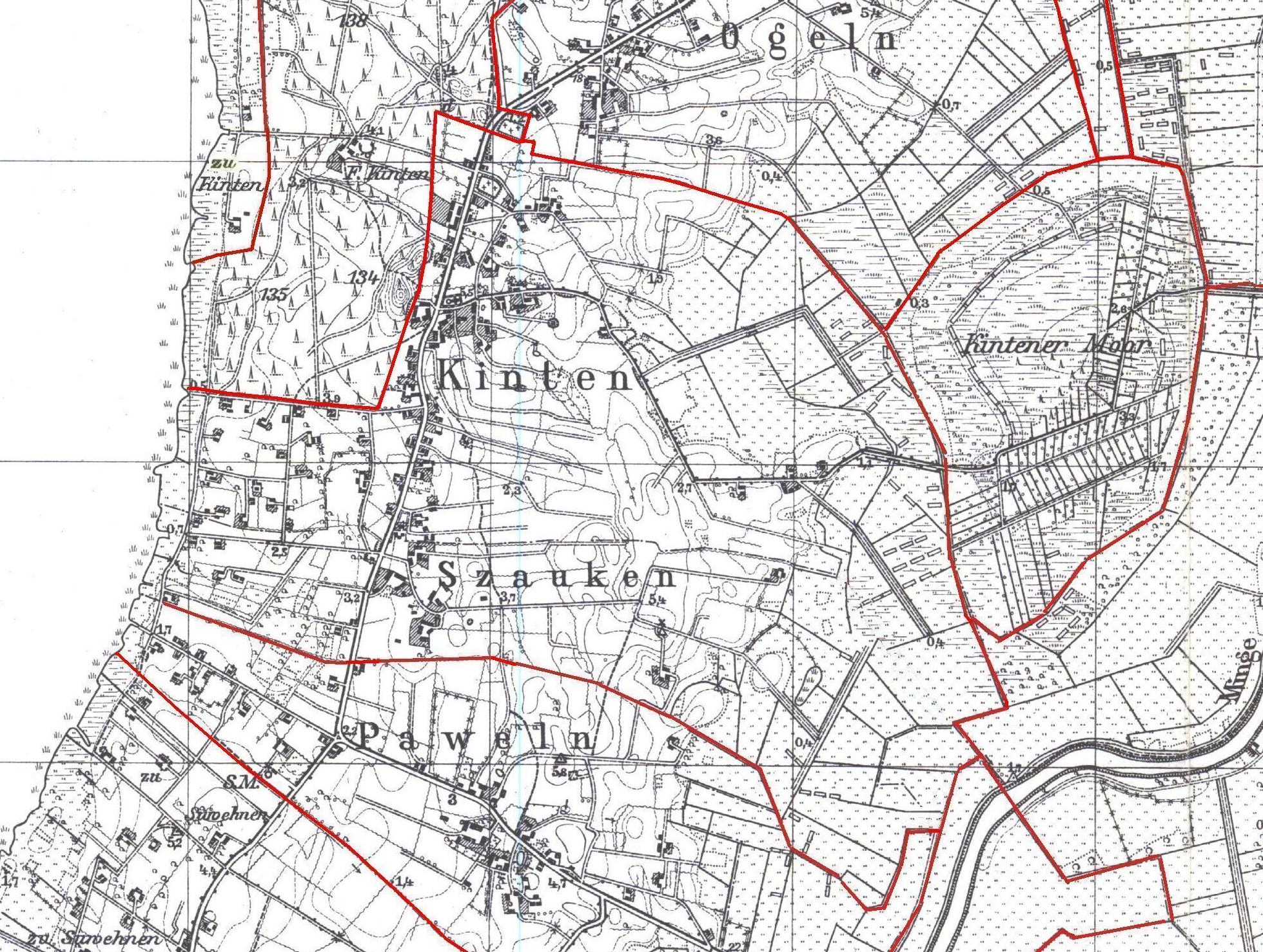 Ausschnitt aus dem Meßtischblatt 0593 Kinten, 1:25 000) | ||||