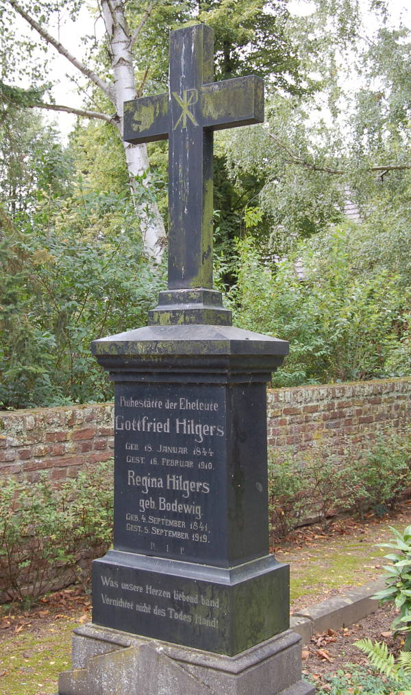 Grabmal der Eheleute Gottfried & Regina Hilgers auf dem Friedhof an der alten Kirche in Kirdorf (Bedburg/Erft) | |||