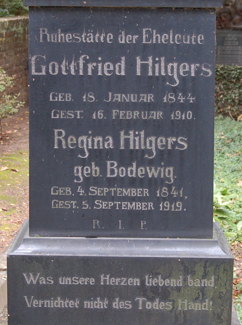 Grabinschrift für die Eheleute Gottfried & Regina Hilgers auf dem Friedhof an der alten Kirche in Kirdorf (Bedburg/Erft) | |||