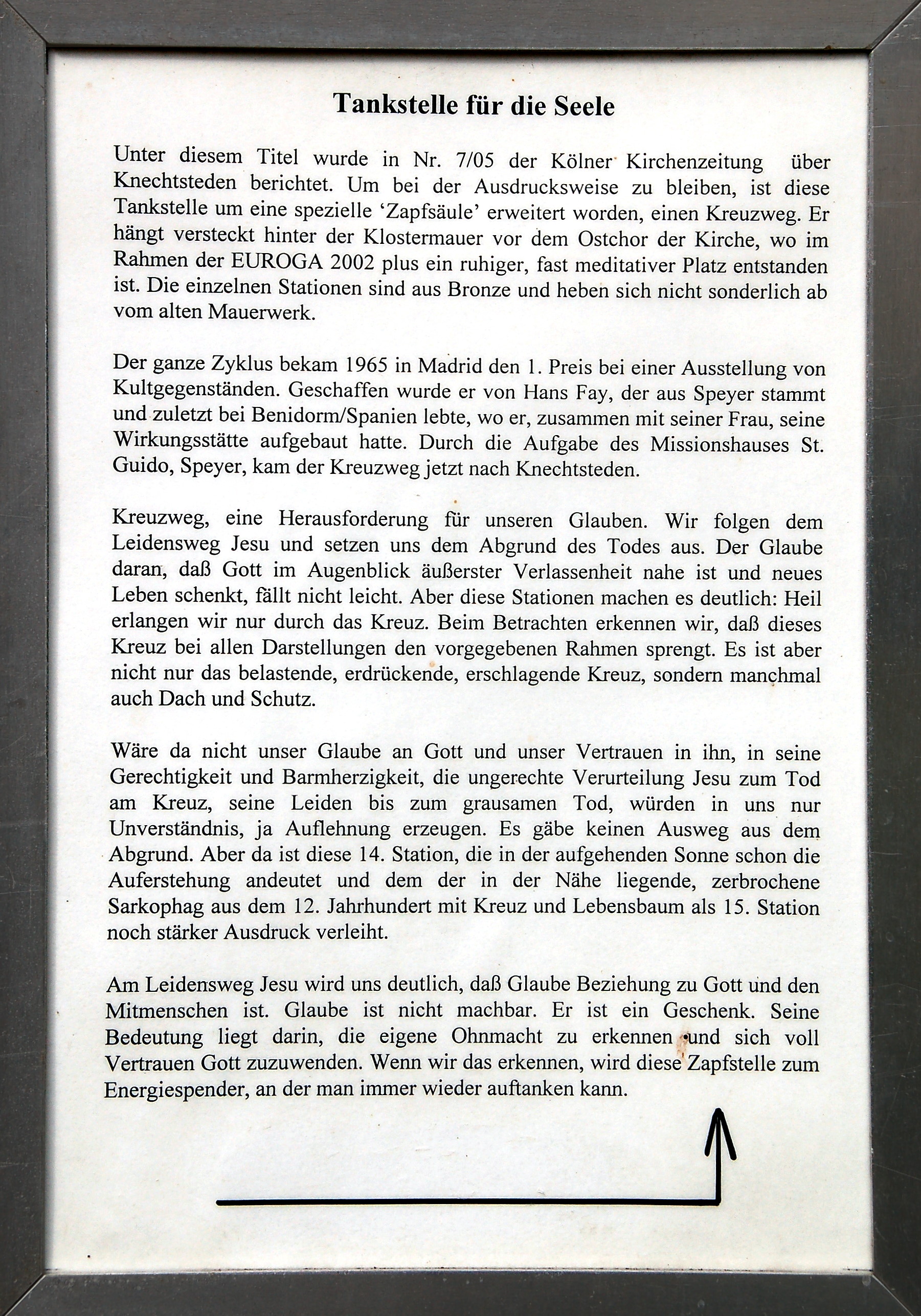 | aktuell | 18:33, 6. Sep. 2012 | 1.801 × 2.574 (1,36 MB) | KlausErdmann (Diskussion • Beiträge) | {{Information |Beschreibung = Kloster Knechtsteden, Tankstelle der Seele ;Informationstafel |Quelle = selbst fotografiert |Urheber = K.Erdmann |Datum = 6. September 2012 |Scans = |Genehmigung = {{self|Cc-by-nc-sa-3.0-de}} |Andere_Ve |